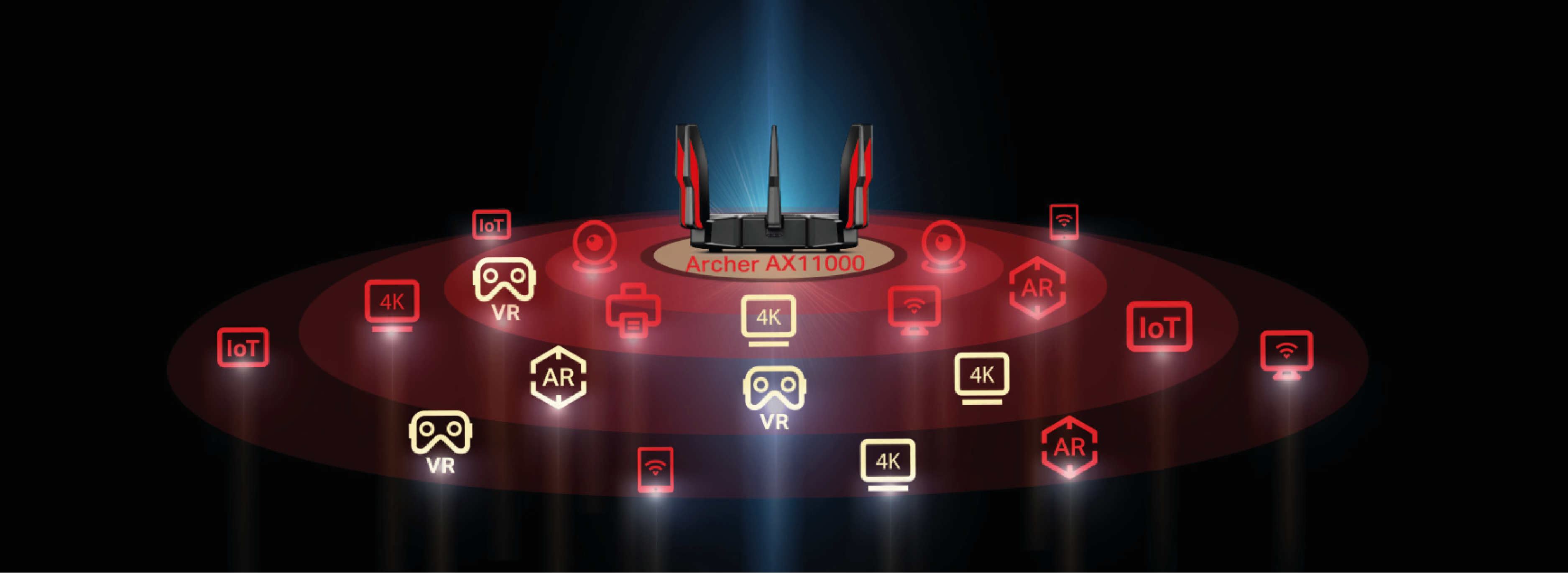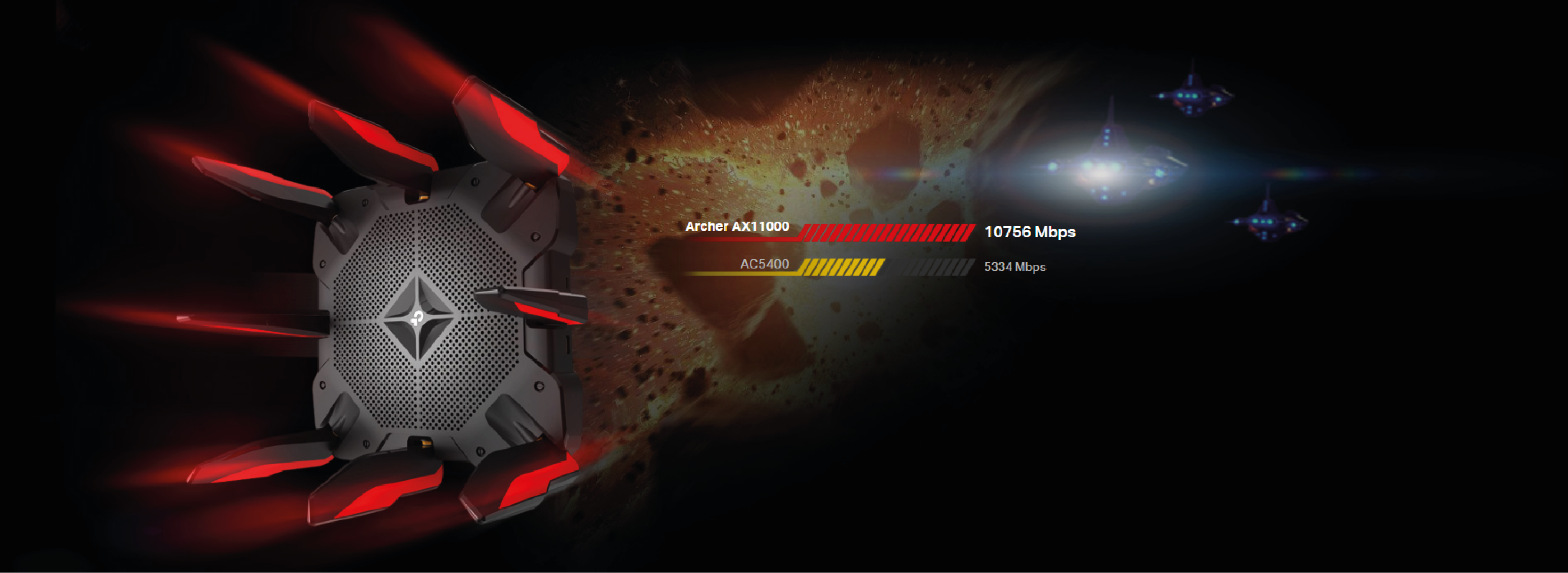 Im szybszy router, tym mniejsze przeciążenia twojego sprzętu gamingowego. Archer AX11000, uzbrojony w standard Wi-Fi 6, to ultraszybki router o wzmocnionym zasięgu, którego prędkości dochodzą nawet do 10756 Mb/s.