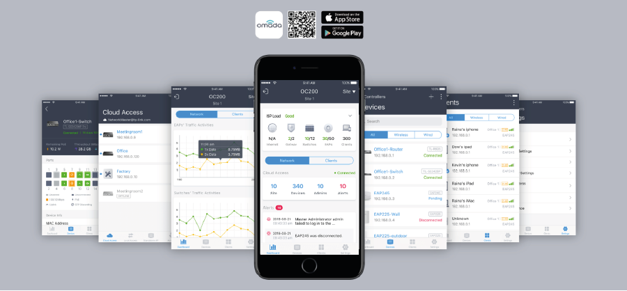 Już dziś pobierz bezpłatną aplikację Omada i zdalnie konfiguruj swoje urządzenia, monitoruj ruch sieciowy oraz zarządzaj klientami za pomocą smartfona lub tableta z dowolnego miejsca na świecie.