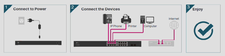 Przełącznik TL-SG1218MPE jest zgodny ze standardami 802.3af/at PoE+, a każdy z jego portów PoE zapewnia zasilanie o mocy 30 W. Całkowita moc zasilania PoE dla 16 portów PoE utrzymuje się na poziomie 192 W, co czyni urządzenie idealnym uzupełnieniem systemu monitoringu dla małych i średnich firm.