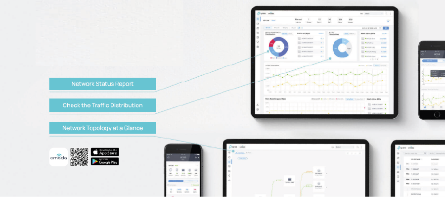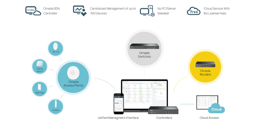 - Nawet 500 punktów dostępowych Omada, przełączników JetStream i routerów SafeStream zarządzanych centralnie.