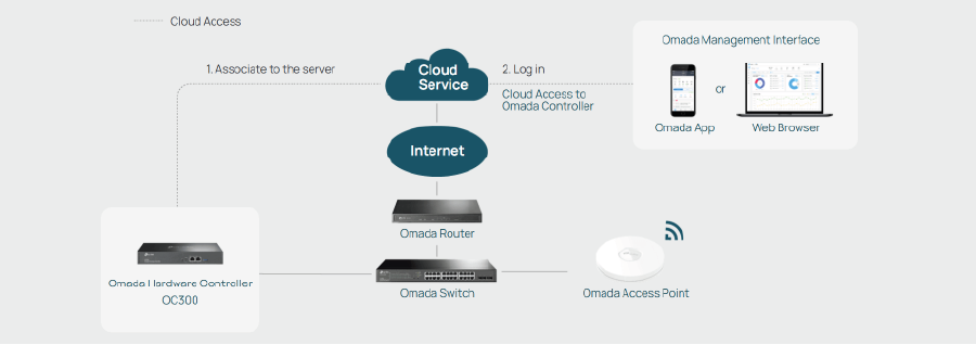 Poprzez platformę do programowego sterowania infrastrukturą sieciową kontroler sprzętowy OC300 zapewnia możliwość w pełni scentralizowanego zarządzania punktami dostępowymi, przełącznikami i bramami sieciowymi — i to z wykorzystaniem tylko jednego interfejsu.