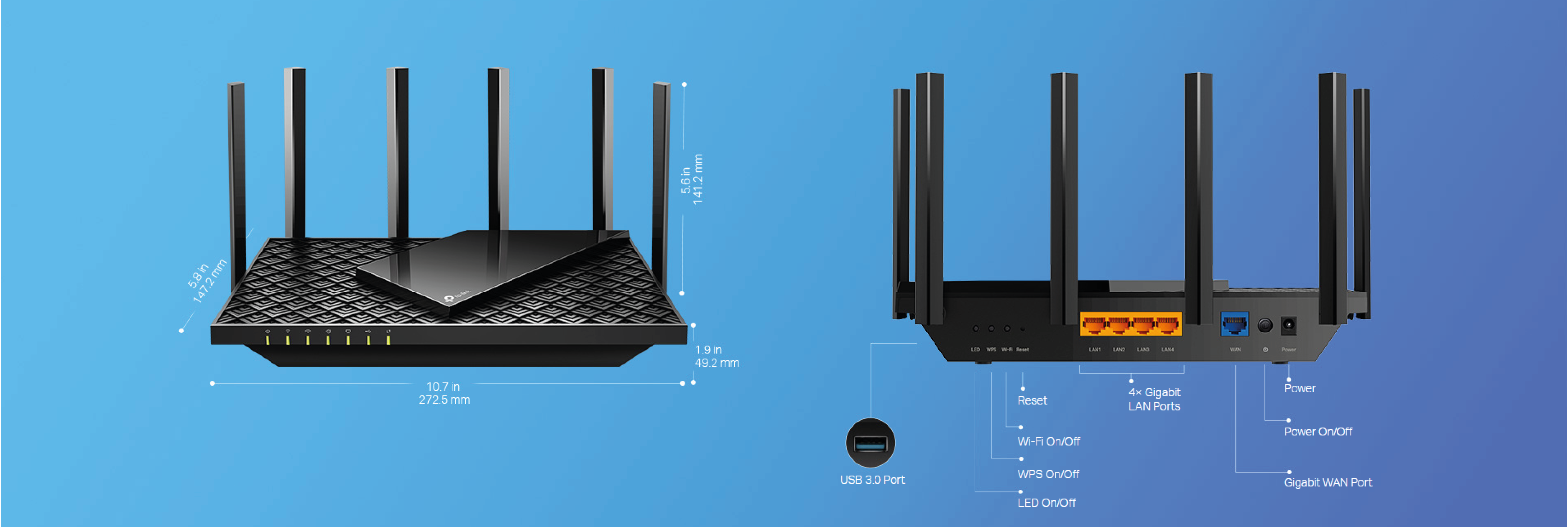 Przeplatane na ukos prostokątne elementy, które tworzą górną płaszczyznę obudowy urządzenia, przywodzą na myśl zbroję łuskową w eleganckim, współczesnym wydaniu. Aż 167 cm² (25 cali²) tej powierzchni służy do wentylacji routera, co w rezultacie usprawnia odprowadzanie ciepła i pozwala na wydajną pracę urządzenia.