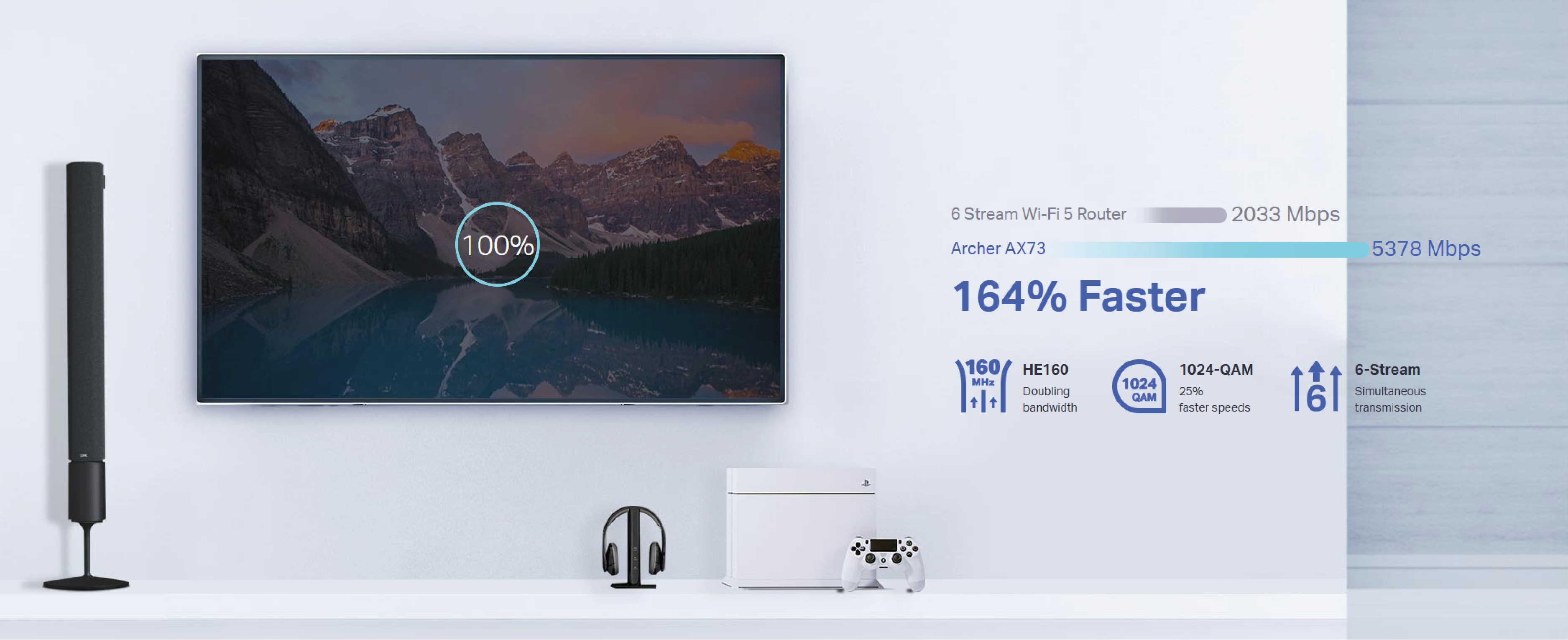 Połącz się z pasmem 5 GHz i przesyłaj strumieniowo bez opóźnień nawet kilka filmów w jakości 8K jednocześnie.