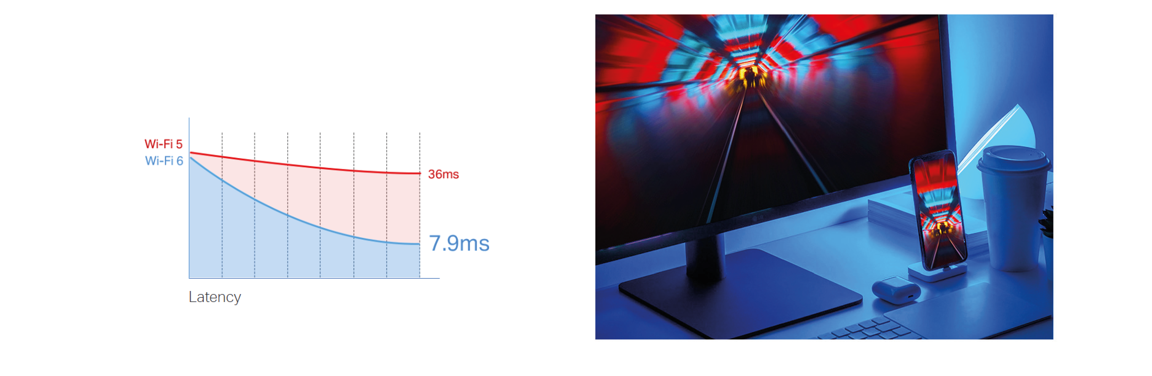 Rewolucyjna technologia OFDMA redukuje występowanie lagów aż o 75%. W praktyce oznacza to, że rozgrywki są niezwykle dynamiczne, połączenia wideo mają świetną jakość, a transmisja strumieniowa na żywo jest zaskakująco płynna.*