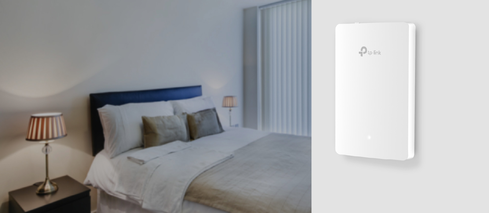 Umieszczenie urządzeń EAP w każdym pokoju umożliwia gościom korzystanie z prywatnej sieci Wi-Fi, która zapewnia wysokie prędkości, silny sygnał i zasięg obejmujący całą przestrzeń.