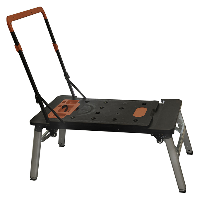WIS0731 to przenośny stół warsztatowy z wieloma dodatkowymi funkcjami. Po złożeniu ma niewielkie, poręczne wymiary, dzięki czemu bez problemu zmieścisz go do samochodu. Produkt wykonany jest z tworzywa sztucznego ABS oraz aluminium.