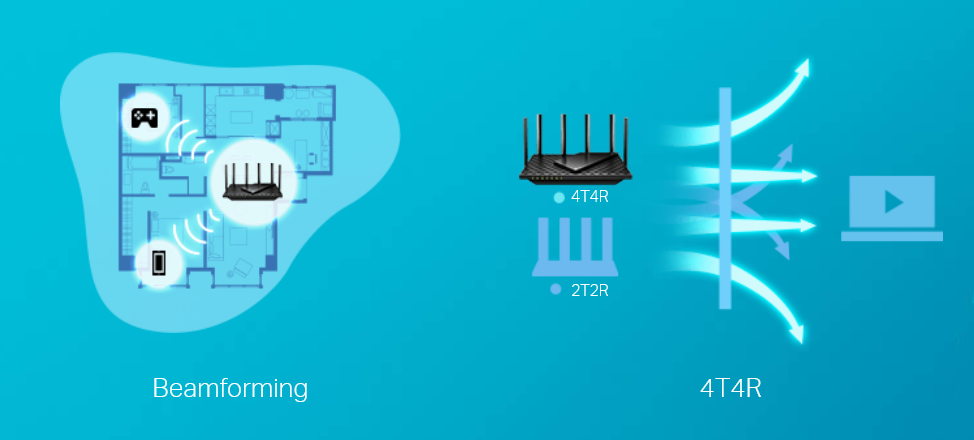 Technologie MU-MIMO i OFDMA znacznie poprawiają wydajność sieci przy podłączonych wielu urządzeniach klienckich. Ponadto MU-MIMO usuwa zjawisko kolejkowania transmisji, dzięki niemu wiele urządzeń może łączyć się z routerem jednocześnie.