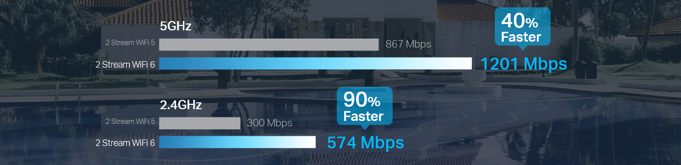 Ulepsz swoją sieć do standardu Wi-Fi 6! Maksymalna teoretyczna przepustowość EAP610 wynosi 1775 Mb/s, znacznie więcej niż w starszych urządzeniach wykorzystujących Wi-Fi 5.