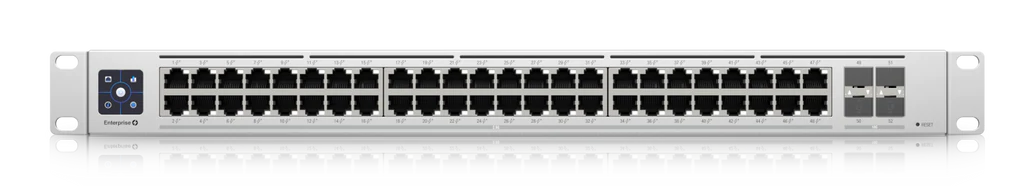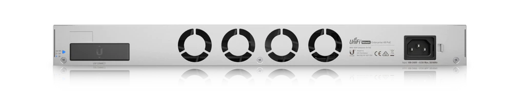 Ubiquiti USW-Enterprise-48-PoE to zarządzalny switch kompatybilny z siecią UniFi. Został wyposażony w 48 portów 2.5G Ethernet (2,5 Gb/s) oraz 4 sloty SFP+ (10 Gb/s). Zapewnia wysoką przepustowość, która sięga do 160 Gb/s, prędkość przekazywania pakietów wynosi 238,095 Mp/s. Na wszystkich portach Ethernet (48) znajdują się wyjście zasilania PoE w standardzie IEEE 802.3af/at. Łączny budżet mocy zasilania wynosi 720 W, urządzenie posiada wbudowany zasilacz, opcjonalnie może być podłączone do USP RPS.