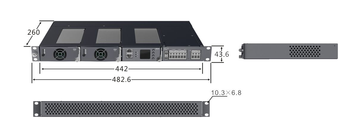 Siłownia posiada obudowę przystosowaną do standardu Rack 19", wysokość wynosi 1U. Wewnątrz obudowy znajdują się prostowniki, moduł kontrolny i moduł PDU (złącza).