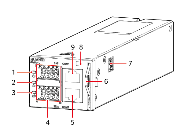 Kontroler SMU11C umożliwia zarządzanie przez aplikacje LIVE-C, nie posiada graficznego interfejsu Web. Porty komunikacyjne służą do połączenia z oprogramowaniem Huawei lub do podłączenia expansion boxa MUE03A.