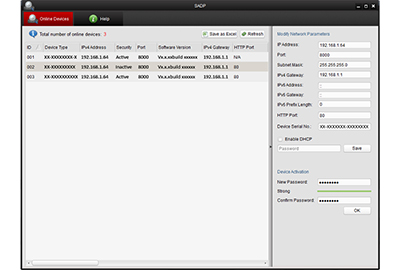 Aplikacja SADP (Search Active Devices Protocol) stanowi przyjazne w użyciu i nie wymagające instalowania narzędzie software’owe do online-wyszukiwania urządzeń. Wyszukuje ono aktywne urządzenia online w Twojej podsieci i wyświetla informacje o tych urządzeniach. Za pomocą tego oprogramowania możesz też zmodyfikować podstawowe parametry sieciowe tych urządzeń.