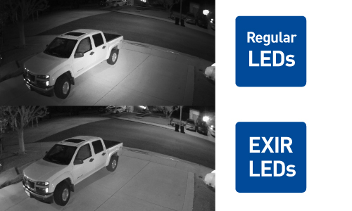 Promienniki podczerwieni EXIR są nowatorska technologią wykorzystująca najnowszy typ wysoko efektywnych diod podczerwieni serii EXIR. W przeciwieństwie do standardowych promienników z okrągłymi diodami, promienniki EXIR wytwarzają strumień świetlny o charakterystyce prostokątnej. Dzięki temu doskonale i równomiernie pokrywają cały plan obserwacyjny zarówno centralne punkty sceny jak również narożniki. W technologi tradycyjnej zazwyczaj centrum planu było prześwietlone natomiast rogi obrazu są niedoświetlone. W stosunku do poprzedniej generacji, EXIR posiada lepsze rozproszenie ciepła i zwiększoną żywotność nawet o 20 tys. godzin.