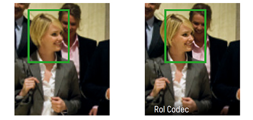 Inteligentny kodek RoI (Region of Interest) pozwala na poprawę jakości wybranych fragmentów obrazu oraz umożliwia ograniczenie jakości pozostałych fragmentów. Pozytywnie wpływa to na wykorzystanie mocy obliczeniowej procesora sygnałowego, zmniejsza wymagania dotyczące pasma sieciowego oraz usprawnia identyfikowanie tylko najbardziej newralgicznych punktów. W kamerze możliwe jest ustawienie jednej strefy dla każdego ze strumieni.