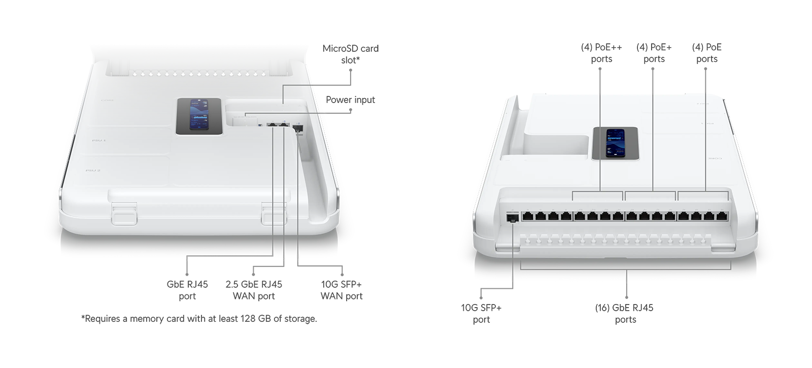 UDW jest został wyposażony w dysk SSD o pojemności 128 GB oraz kartę microSD o pojemności 512 GB. Przydadzą się zwłaszcza jeżeli wykorzystujesz Dream Wall jako rejestrator IP w systemie UniFi Protect.
