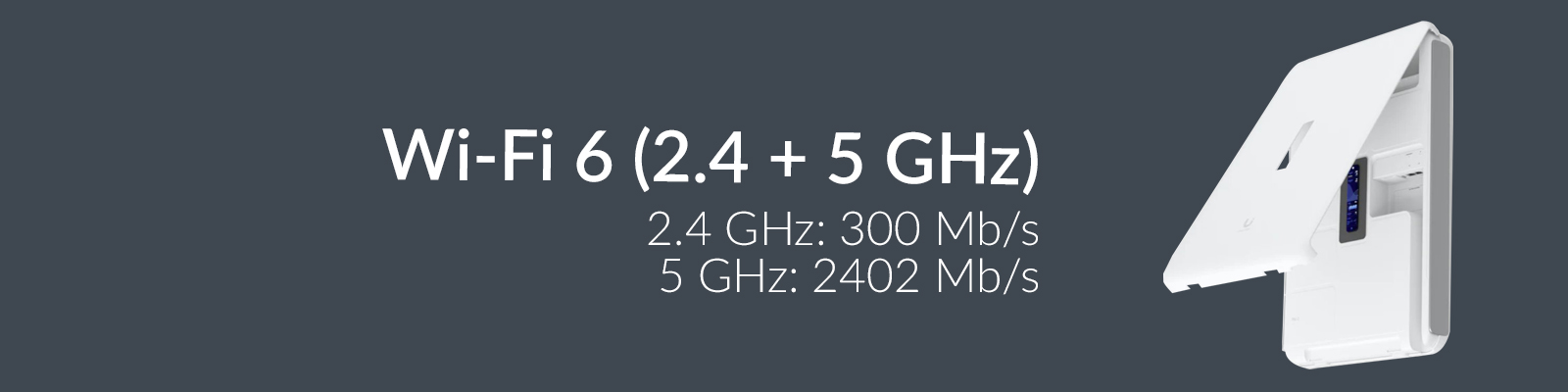 Dodatkowym atutem UniFi Deam Wall jest wbudowane radio i możliwość pracy jako standardowy punkt dostępowy. Urządzenie może transmitować sieć bezprzewodową w pasmach 2,4 i 5 GHz jednocześnie, obsługuje nowoczesny standard Wi-Fi 6, w tym protokoły IEEE 802.11 b/g/n w 2,4 GHz oraz IEEE 802.11 a/n/ac/ax w 5 GHz. Maksymalna teoretyczna przepustowość wynosi 300 Mb/s w 2,4 GHz i 2402 Mb/s w 5 GHz.