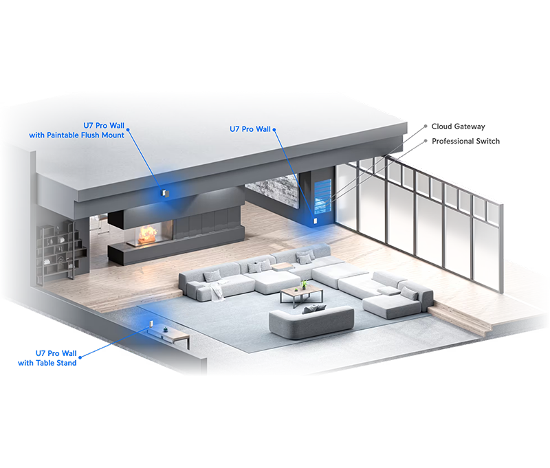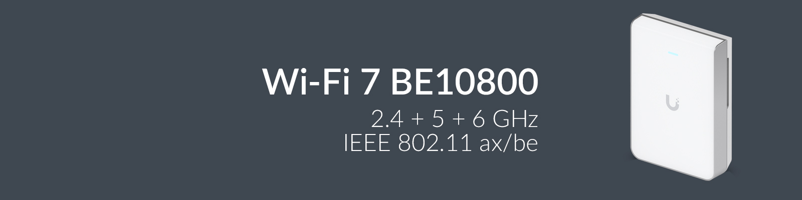 Ubiquiti U7 Pro Wall to punkt dostępowy przystosowany do pracy w systemie UniFi. Może transmitować sieć bezprzewodową Wi-Fi 7, obsługuje protokoły IEEE 802.11 b/g/n/ax/be w paśmie 2,4 GHz, IEEE 802.11 a/n/ac/ax/be w 5 GHz i IEEE 802.11 be w 6 GHz. Maksymalna teoretyczna przepustowość Wi-Fi wynosi odpowiednio 688 Mb/s w 2,4 GHz (2x2 MIMO), 4324 Mb/s w 5 GHz (2x2 MIMO) oraz 5764 Mb/s w 6 GHz (2x2 MIMO). Zastosowanie protokołu 802.11be zapewnia większą przepustowość niż standard Wi-Fi 6E, który również korzysta z trzech pasm. Tak duża prędkość jest możliwa do osiągnięcia dzięki zastosowaniu kanałów o szerokości 320 MHz i modulacji 4096QAM. Standard Wi-Fi 7 wprowadza również wiele innych, przydatnych funkcji, takich jak MLO (Multi-Link Operation).