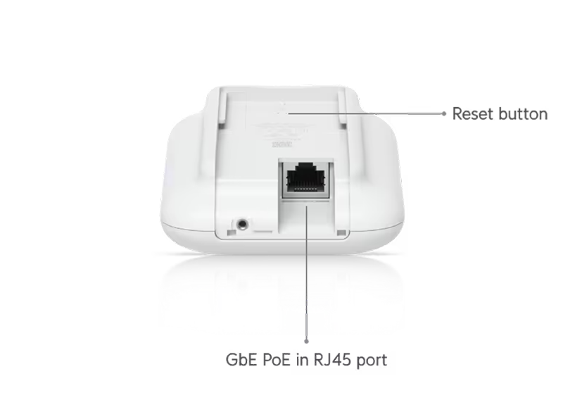 Urządzenie zostało wyposażone w 1 gigabitowy port Ethernet (10/100/1000 Mb/s), który jednocześnie służy za wejście zasilania PoE (802.3 af). Maksymalny pobór mocy wynosi 8 W, możesz skorzystać z kompatybilnego zasilacza PoE (należy zakupić go osobno) lub switcha PoE.