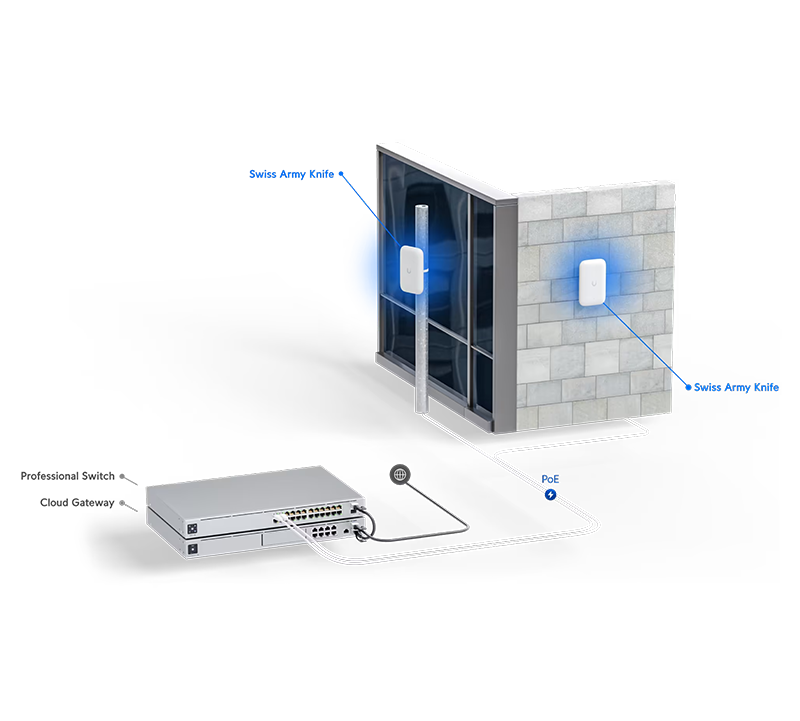 Ubiquiti UK-Ultra to urządzenie, które sprawdzi się w bardzo wielu zastosowaniach. Możesz go montować wewnątrz i na zewnątrz budynków, standardowo na suficie lub ścianie, zależnie od potrzeb. Dodatkowo złącza RP-SMA pozwalają na znaczne zwiększenie zasięgu poprzez zastosowanie zewnętrznych anten. Wszystkie te cechy w połączeniu z atrakcyjną ceną sprawiają, że Ubiquiti Swiss Army Knife sprawdzi się w każdym domu i biurze.